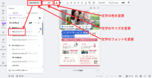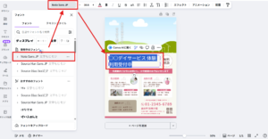 テキストを選択した状態で、画面上部のフォント名(例:Noto Sans JP など)をクリックすると、他のフォントに変更できます。