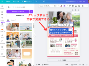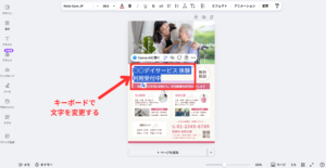 テンプレートが開いたら、いよいよチラシの中身を「自分たちのデイサービス仕様」に変えていきます。