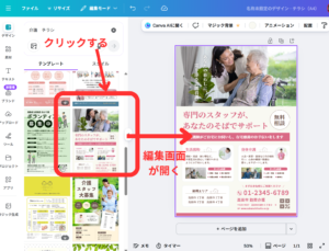 それでは、実際にCanvaを使って、デイサービスのチラシを作っていきましょう!